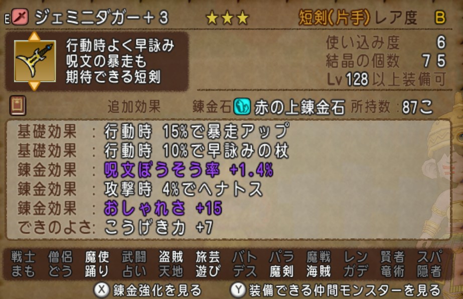 武器は絶対に「ジェミニダガー」にしておきましょう。