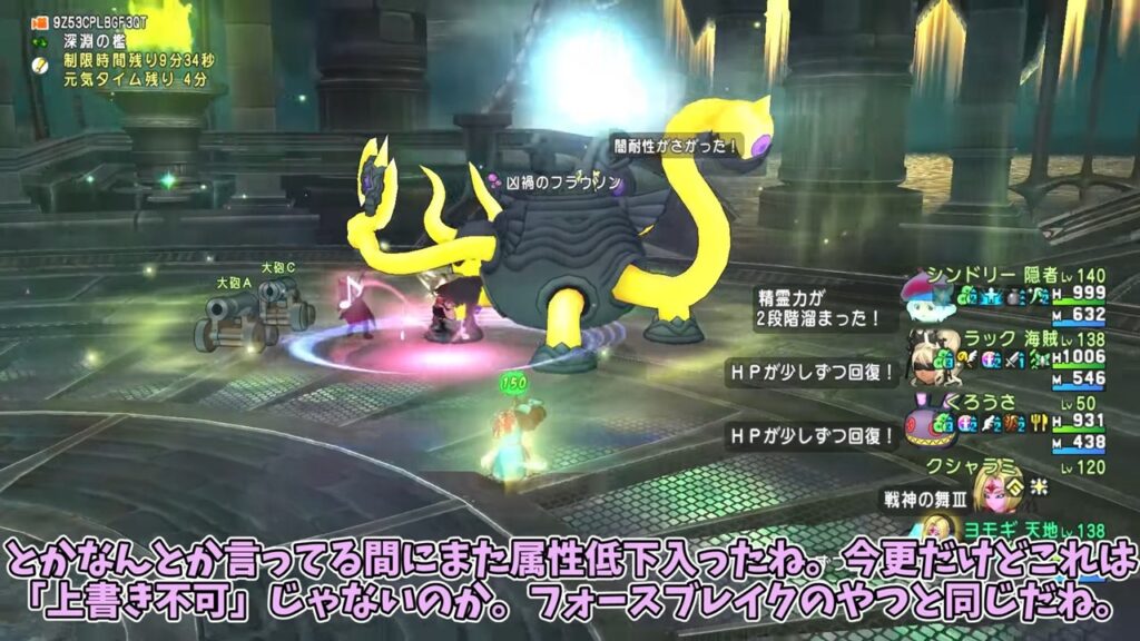 こいつはエンドボス枠にも関わらず闇耐性が無く、属性低下耐性もガバガバ、闇低下や不気味も入れたい放題。