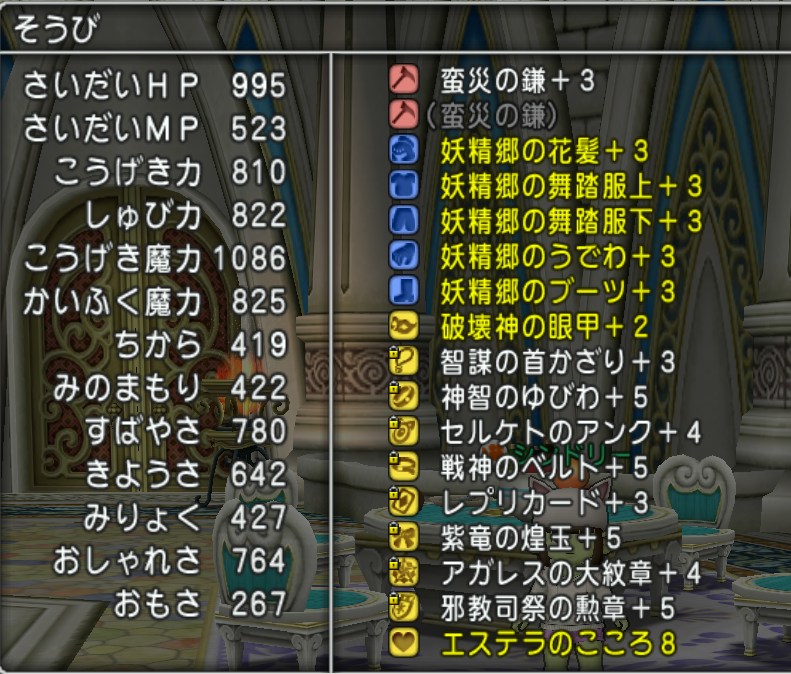 - どちらも上げつつ、どちらかというと攻撃魔力重視(プレシャスレイン用)